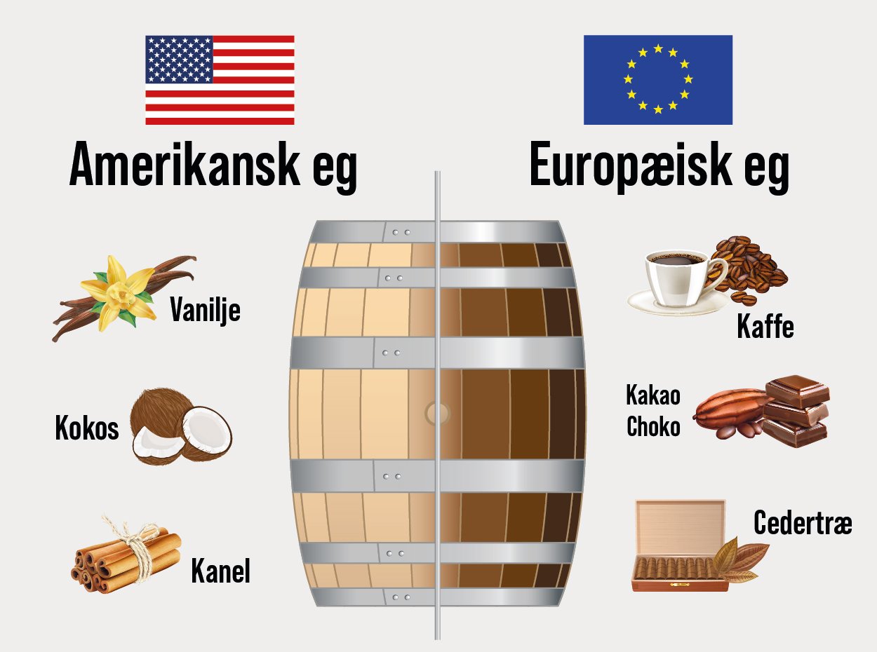 Amerikansk eg har været synonymt med Rioja i årevis, men rigtig mange vinproducenter i Ribera del Duero anvender også de amerikanske fade. Amerikansk eg afgiver tydelige aromaer af kokos, vanilje, kanel og sødlige bagekrydderier. Generelt giver amerikansk eg en mere powerfuld og åbenlys krydret smag ift. fransk eg.